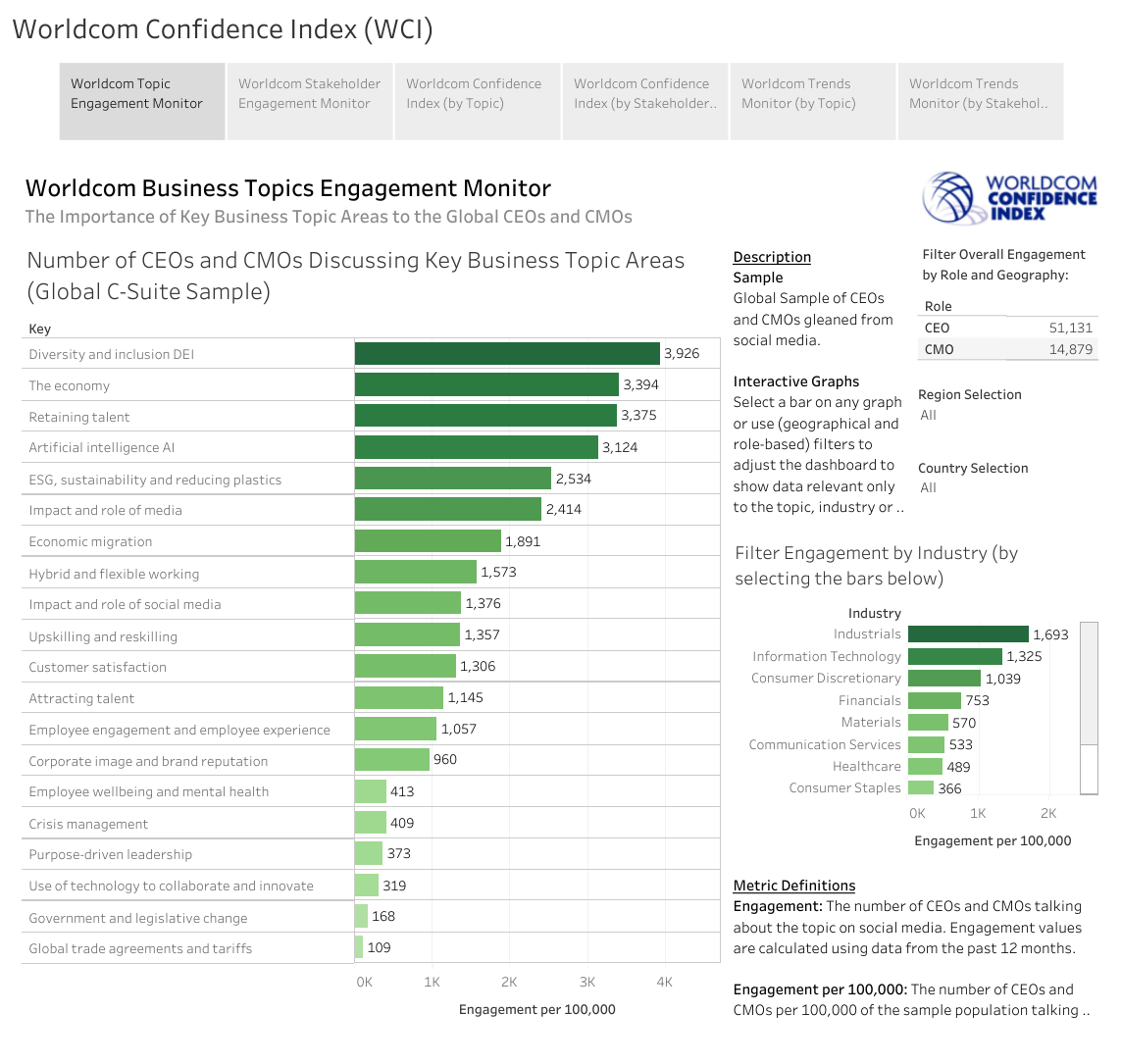 So, armed with the latest confidence rankings from the Worldcom’s Global Business Leaders Confidence Index (WCI), we asked Worldcom’s crisis management experts to pick the four people-related topics that are most likely to be a cause of brand, reputation and leadership damage.