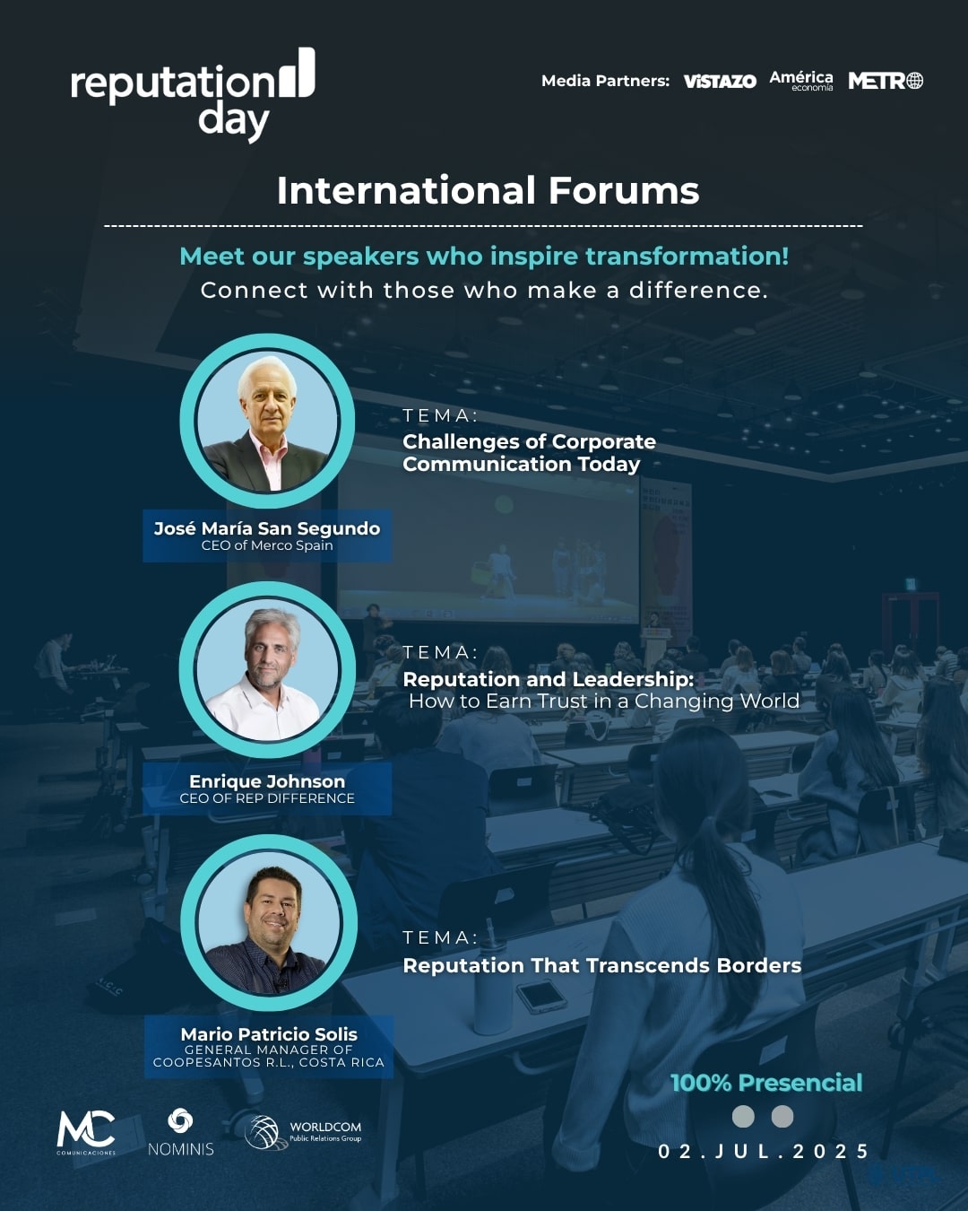 The event will have a packed agenda of high-level presentations and panels with over 300 of the most influential business leaders to forge a more responsible and socially connected corporate future. Reputation Day is aimed at a select audience: directors, managers, presidents and CEOs, as well as marketing, sales, and communications managers.